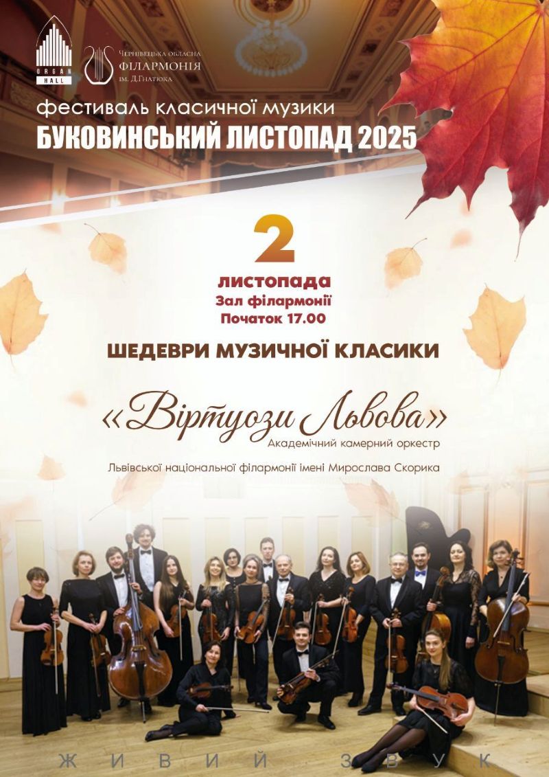 «Віртуози Львова» виступлять на фестивалі класичної музики «Буковинський листопад»