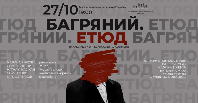 27 жовтня у фойє Національної філармонії:  лунатимуть повстанські пісні та проза Івана Багряного