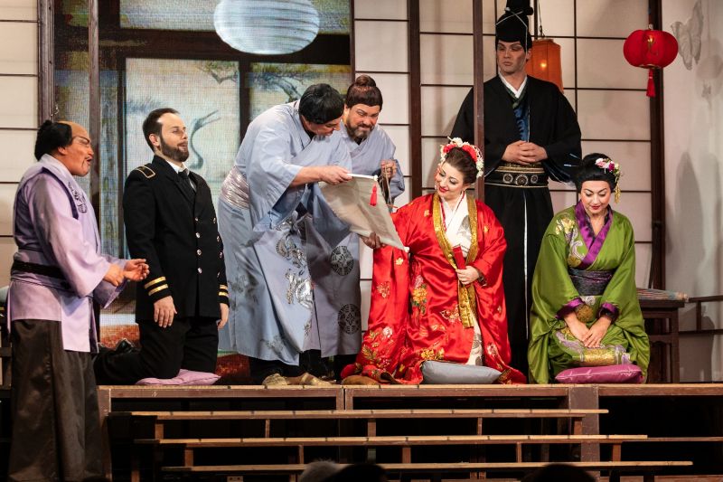 Образ щирої, ніжної та самовідданої Чіо-Чіо-сан майстерно втілила заслужена артистка України Алла Мишакова. У партії її вірної служниці Сузукі виступила лауреатка міжнародних конкурсів Вероніка Коваль, додавши виставі глибини та теплоти.