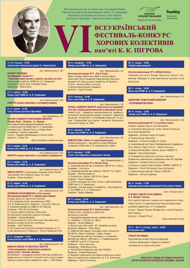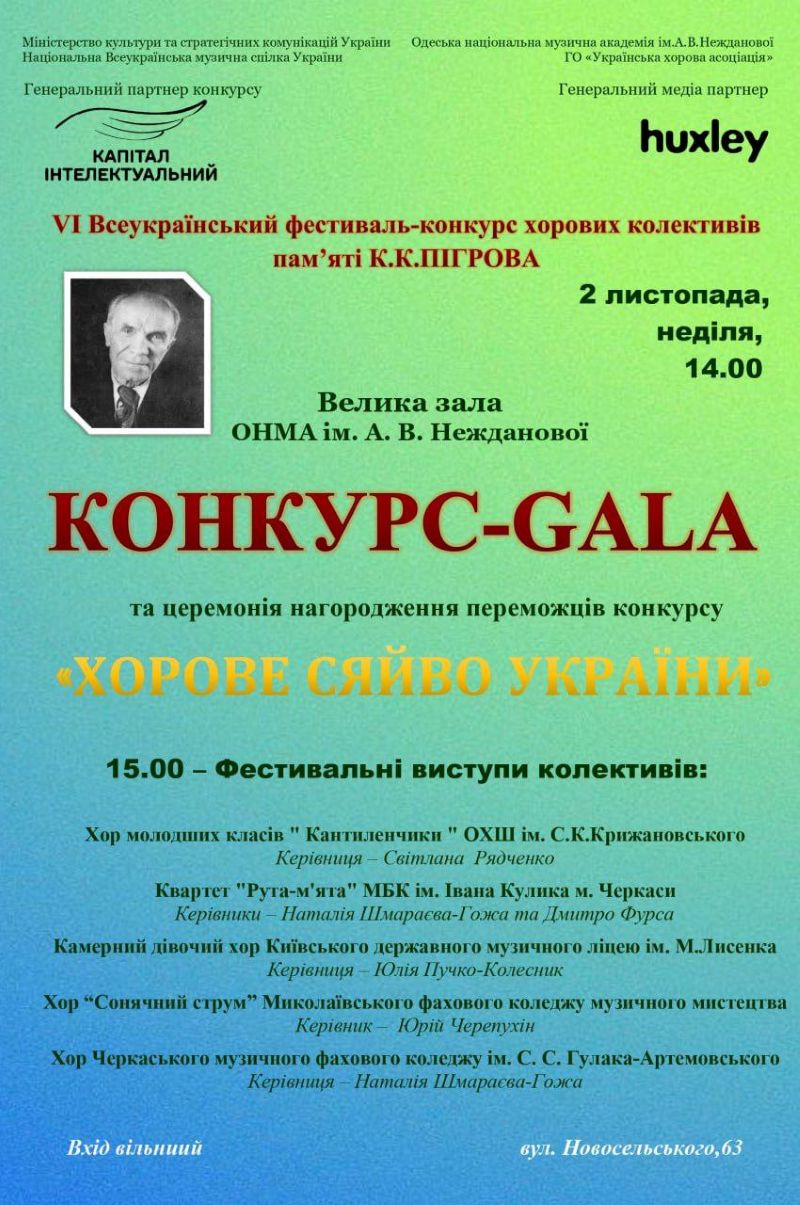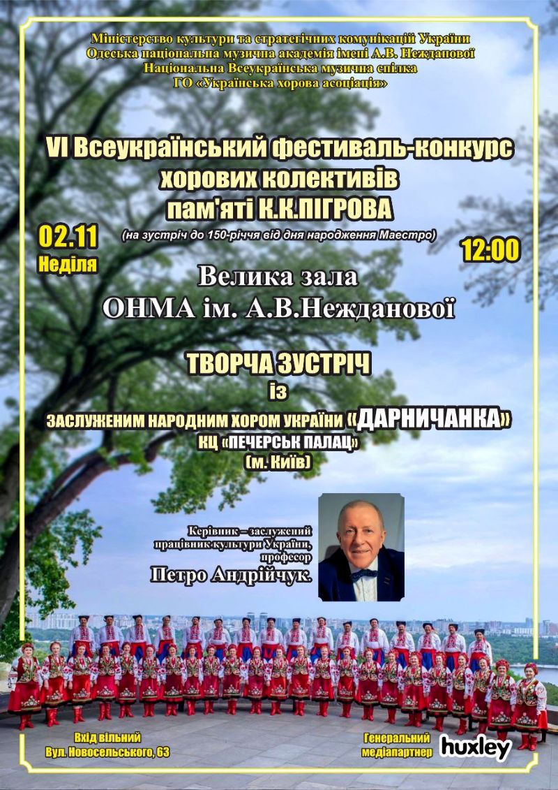 Щиро запрошуємо відвідати справжнє свято хорового мистецтва на фестивалі-конкурсі хорових колективів пам’яті К.К.Пігрова, що відбудеться з 1-8 листопада 2025 року в ОНМА ім.А.В.Нежданової