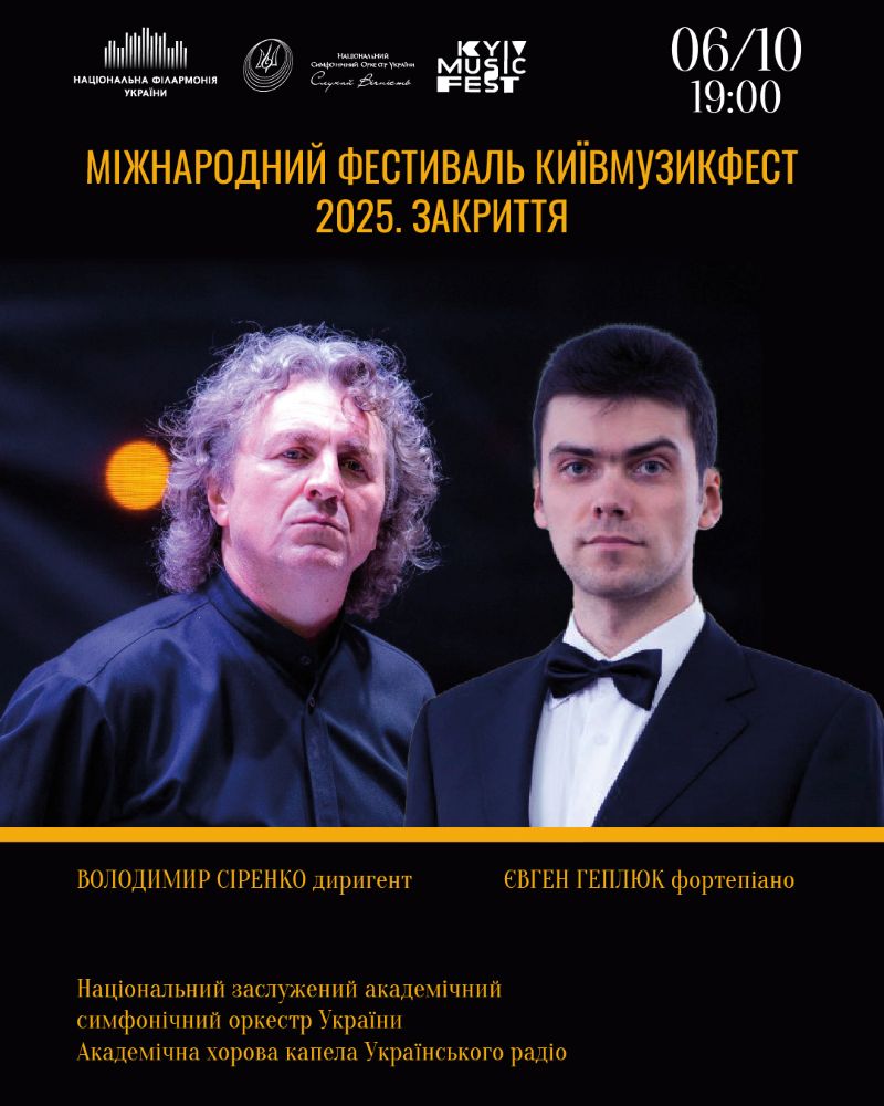 2 жовтня в Колонній залі прозвучить камерна програма для віолончелі та фортепіано у виконанні Максима Шадька й Гліба Саська. Вона поєднає експресивні сонати Валентина Бібіка та Євгена Станковича, щирий і безпосередній вислів Максима Шалигіна, витончену лірику Богдани Фроляк і нові твори молодих авторів Максима Іванова та Юрія Пікуша, написані спеціально для цього вечора. А вже 6 жовтня фестиваль завершиться масштабним концертом за участю Національного симфонічного оркестру України під орудою Володимира Сіренка та Хорової капели Українського радіо. У програмі — монументальні «Пісні, обпалені війною» Лесі Дичко, «Чорна елегія» Євгена Станковича, експресивний Третій концерт для фортепіано Ігоря Щербакова та Симфонія № 1 Олександра Скрипника. Цей вечір, що поєднує пам’ять, драму і силу музичного вислову, стане гідним завершенням «Kyiv Music Fest-2025».