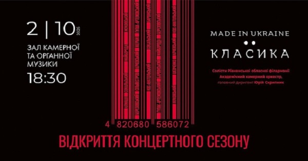 2 жовтня  87-й сезон Рівненської обласної філармонії відкриється програмою, яка звучить як маніфест: «Made in Ukraine: класика»